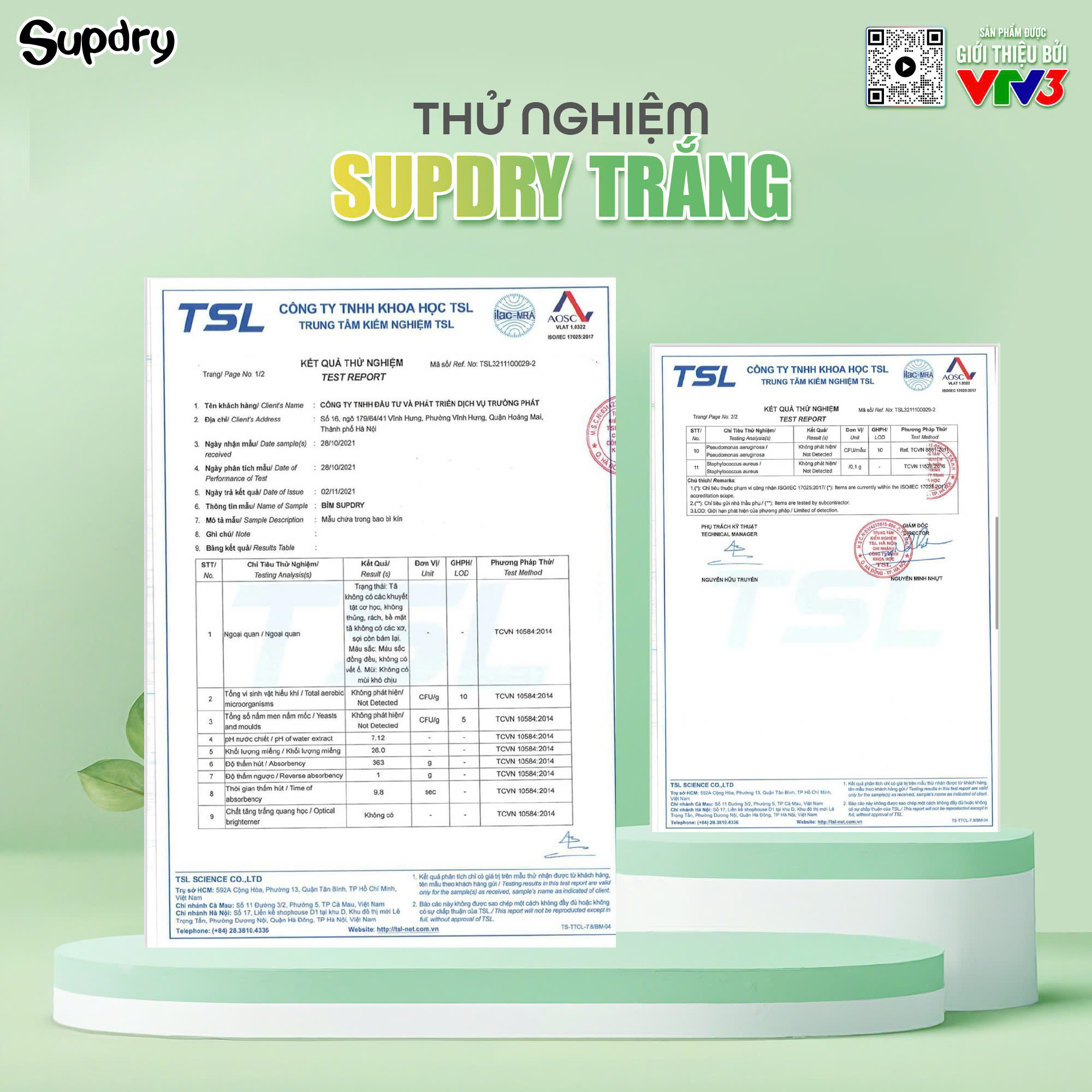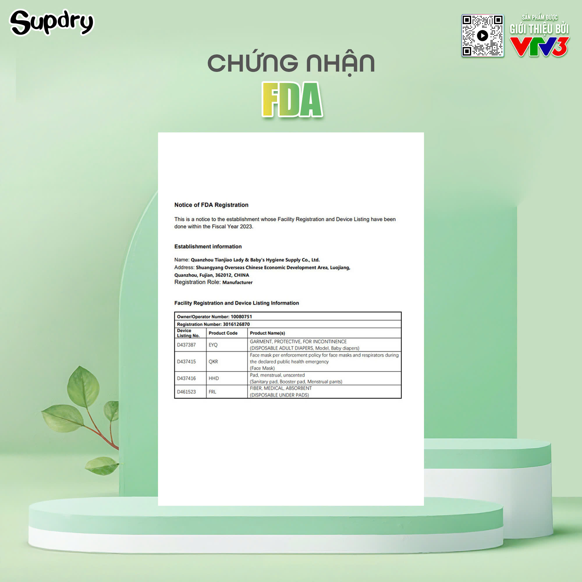 Sau khi sản xuất và đóng gói, bỉm Supdry được nhập khẩu chính ngạch về Việt Nam. Tại đây, sản phẩm tiếp tục được kiểm định chất lượng và cấp phép lưu hành theo đúng quy định hiện hành.
