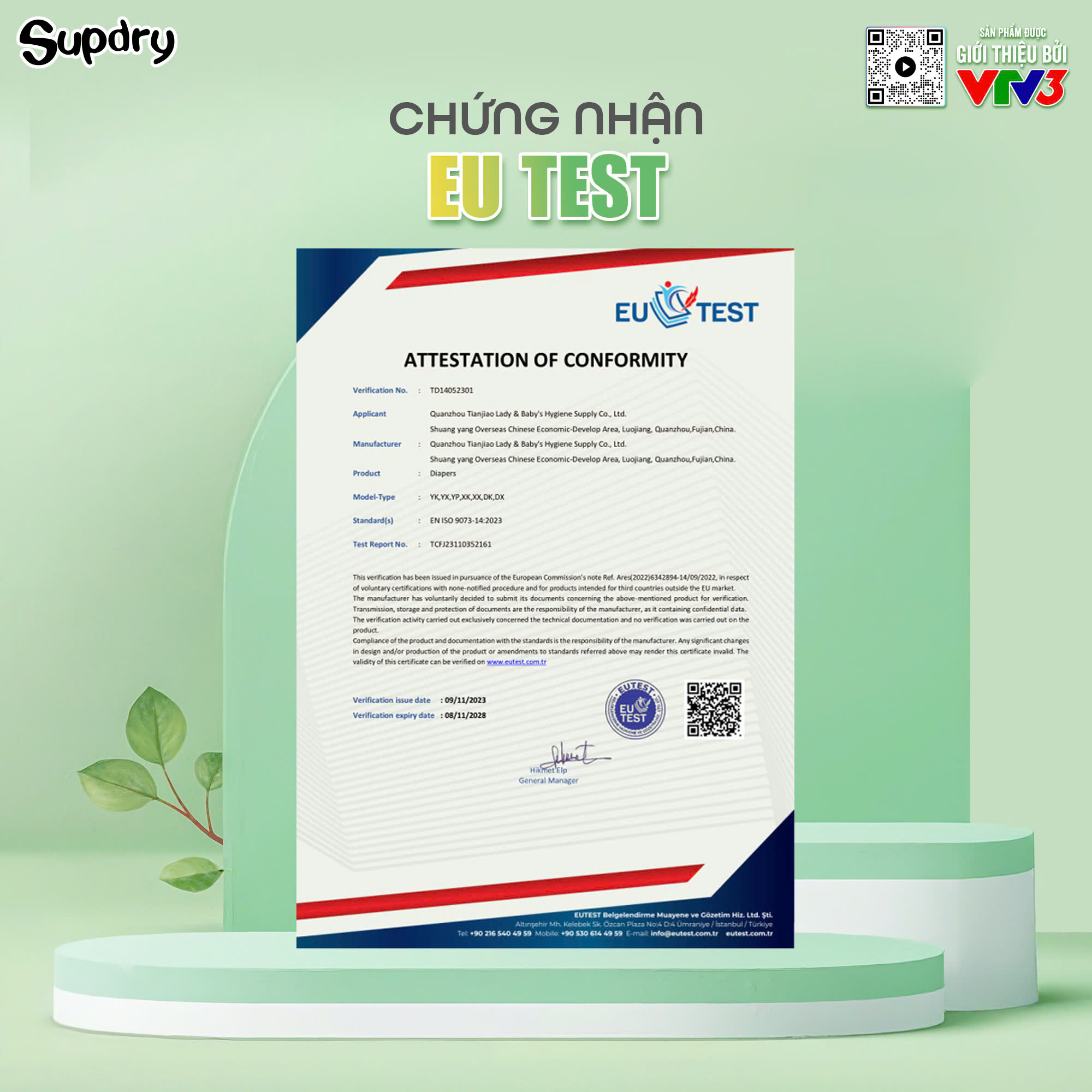 Đằng sau mỗi chiếc bỉm êm ái là một quy trình sản xuất khắt khe, nghiêm ngặt và chỉn chu đến từng chi tiết nhỏ nhất. Với Supdry, chúng tôi không chỉ tập trung vào độ thấm hút, mềm mại hay khô thoáng – mà còn chú trọng đến việc đảm bảo an toàn tuyệt đối cho bé thông qua hệ thống kiểm định chất lượng chuẩn quốc tế.