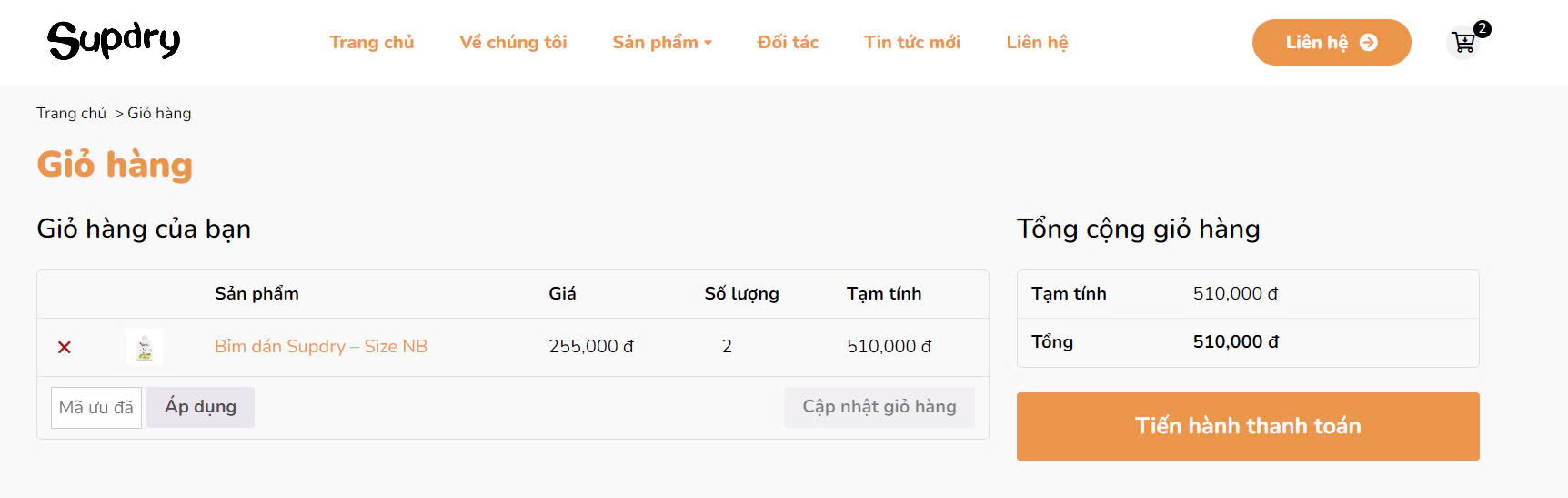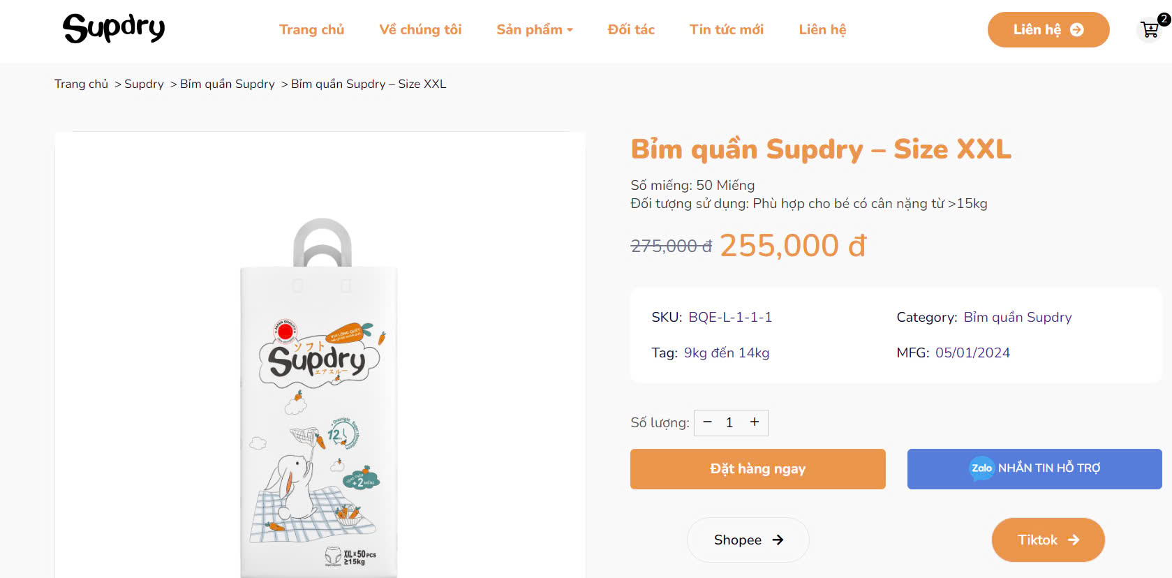 Bước 1: Bạn có thể truy cập vào website Supdry.vn và thực hiện các cách đặt hàng đơn giản sau: