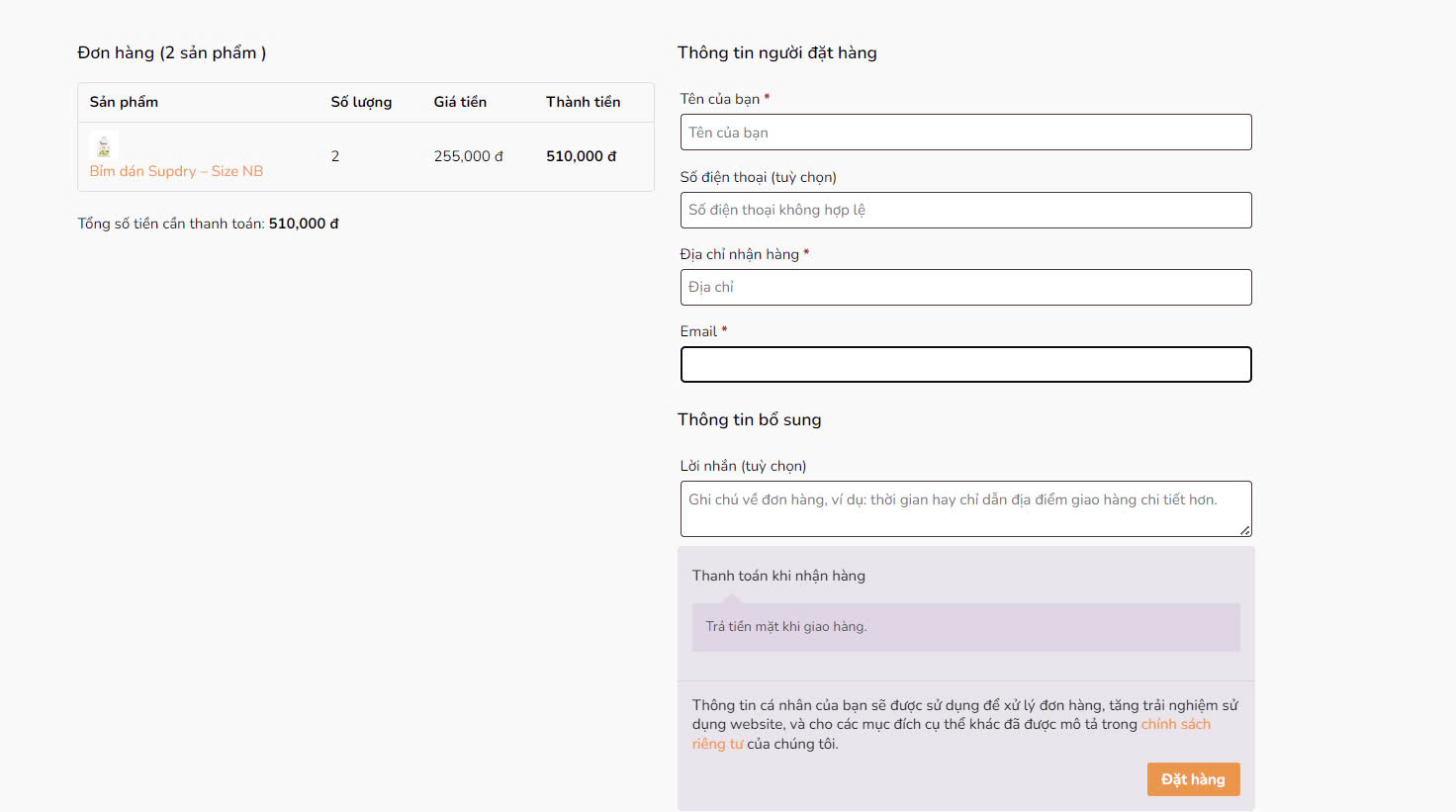 Hiện Supdry.vn có hình thức thanh toán là thanh toán khi nhận hàng.